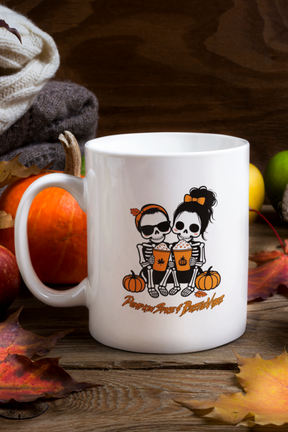 Finding the perfect fall gift is easy with our Pumpkin Spice & Bestie Vibes mug. Its playful design and cozy seasonal vibe make it a hit for birthdays, besties, or just because. Ready to gift with no extra wrapping needed — a hassle-free way to spread autumn cheer.